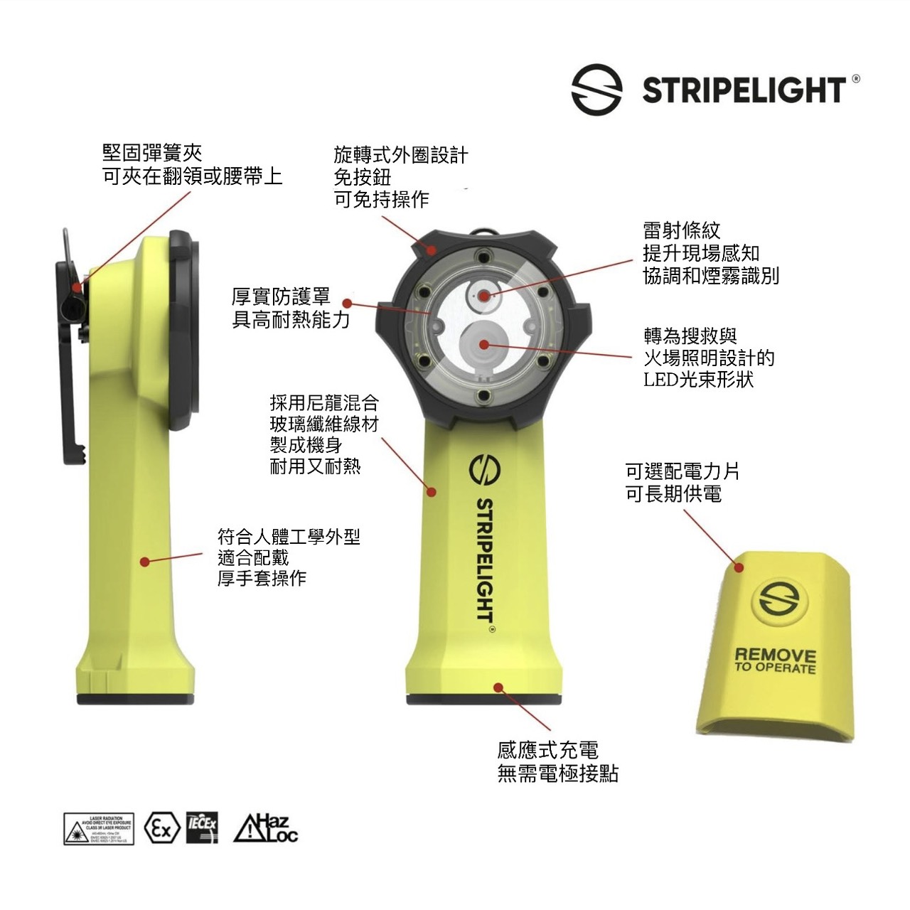 這款 Stripelight(雷射條紋)手電筒適用於危險區域,符合 FOIR HazLoc、ATEX、IECEx 和 Zone 0 等國際防爆標準。 獨特的藍色雷射條紋技術為許多新場域提供了嶄新的用途。