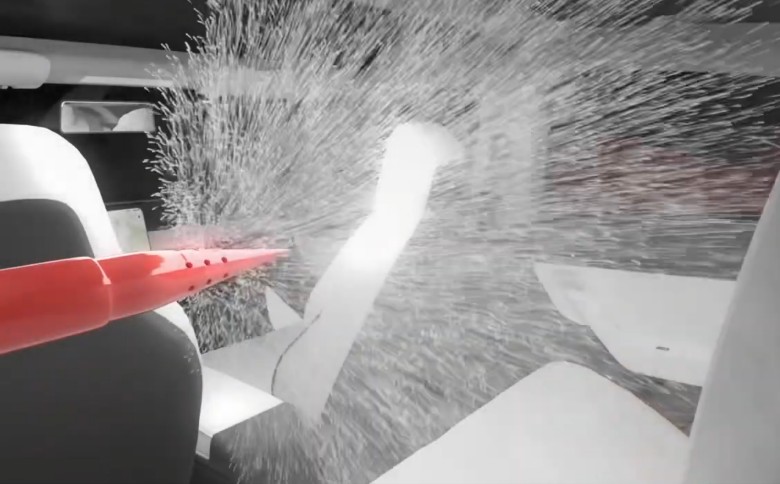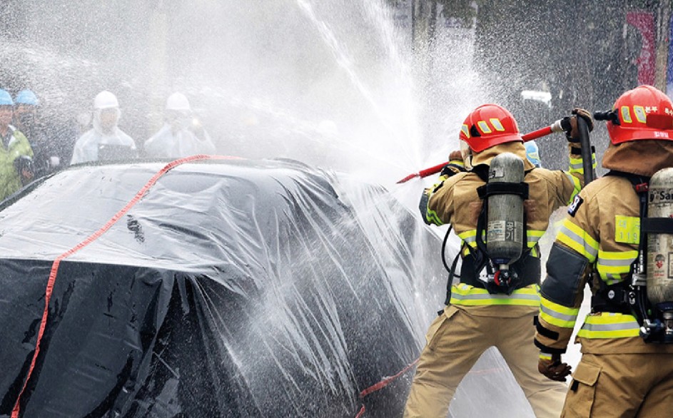 使用方式:連接消防水帶,以前端尖銳點刺穿車輛玻璃(前擋風玻璃、側面玻璃及後側玻璃),開水向車內座艙注水,讓電池模組浸水以達到冷卻的效果 。